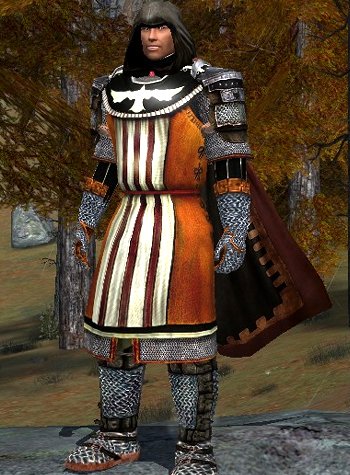 There are so many hauberks available that I have a real hard time choosing. Most hauberks can be purchased at the outfitters spread around Middle Earth. There is of course Bree, Michel Delving, Thorins Hall, but don’t forget to check Trestlebridge, Othrikar, Celondim and Rivendell. Then there are some hauberks that are not available from outfitters but drop from gift boxes at anniversaries or can be made by a tailor if he has the right recipe. The Simple Hauberk comes from one of those gift boxes, but is otherwise quite common. I don’t really think it is that simple at all, it is actually quite nice if you combine it with darker contrasting colours. I chose black for this outfit. All the other items are crafted, except for the cloak which is a random world drop.