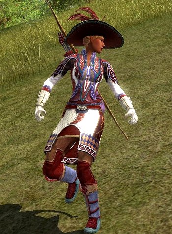 This outfit is a mix of Elven, Dwarves and Man styles. It is probably very lore-breaking but my huntress sure thinks she looks fancy!