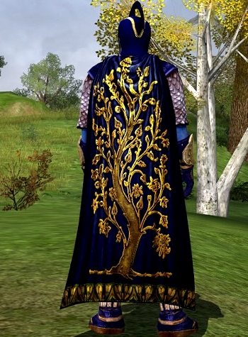 Back: Golden Tree Summer Cloak, Ered Luin blue dye (Summer Festival cosmetic)