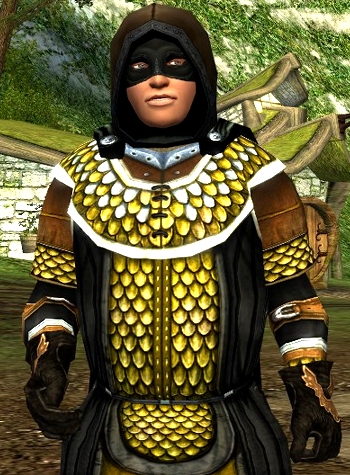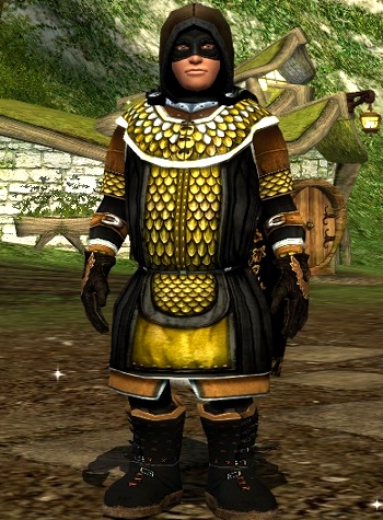 I have had this hauberk for so long that I really can’t remember how I got it. I thought I once purchased it from an outfitter, but according to Darzil’s Incredible Armour Guide this hauberk comes from a festival gift box, so I must have gotten it either from there or from the auction house. Whenever I am in doubt about the origins of an item (which happens frequently, as I have too much fluff in my stashes), I check Darzil’s website to find out where it comes from. His reference guide to all crafted armour, class armour and outfits is invaluable. I hope he will continue his marvelous work for a long time, as I wouldn’t know what to do without his website!