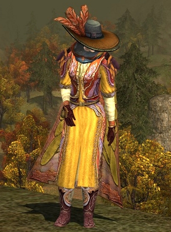Back: Cloak of the Fallen Leaves, gold dye (lotro store exclusive cosmetic)