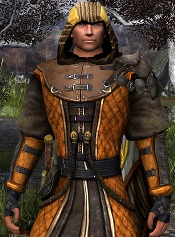 I don’t really know where to start with outfitting in Rise of Isengard. There is such a large selection of new armour pieces and cloaks that it is hard to make a choice. I decided on the medium armour chest that is a common reward from the initial quests in Trum Dreng and the Bonevales. It appears as a quest reward in several places. The boots in this outfit are light armour, but they have a nice design. However this design does not show up on female characters unfortunately. On female elves and women the boots miss the fold at the top and are just simple straight boots. This might be confusing when choosing quest rewards. It is not uncommon in Lotro that items have a different design on males and females, many crafted items differ in design or default colours, so it’s probably not a bug.