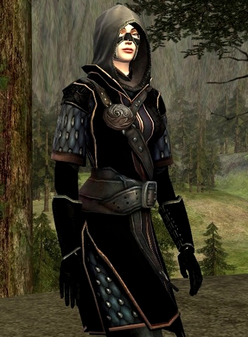 Head: Leather Helm of the Leaping Stag, black dye (Dunland quest reward, medium)