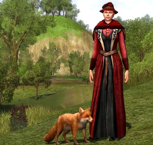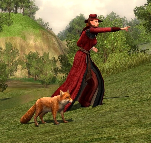 The fox does match well, he is a cute little fox. This is an amazing outfit to, Have you tried the cloak of the ancient ruins or the same style as the wardens wrap cloak that you can buy if you are kindred with the wardens of annuminas? I am using those two right now with the dunland armour and it looks pretty great.