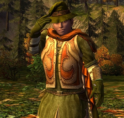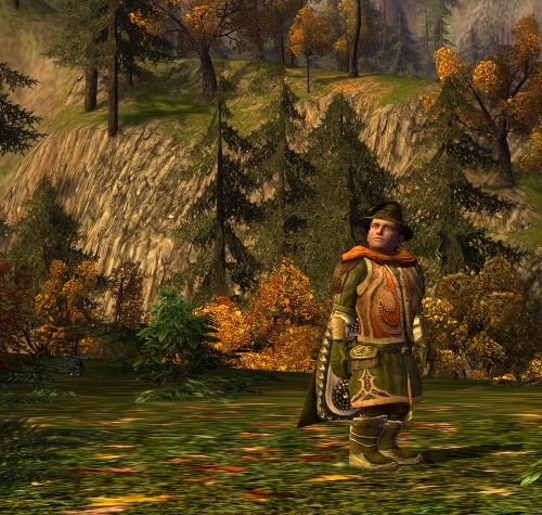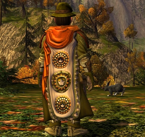 I am still celebrating the harvest festival and enjoying the way the trees change colour in this season. Still no luck on the skeleton horse, but getting lots of other interesting goodies. Here’s the other festival cloak in a combination with a very common robe that you can purchase for a few silvers in Rivendell from the light armour smith.