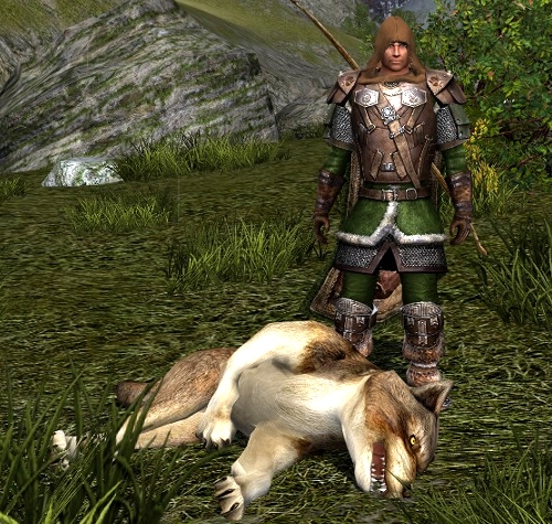 The outfit is based on mostly heavy armour, but since the Dunland and Isengard quest reward armour pieces don’t look heavy at all, as they are made of leather and chainmail, I think they are quite fitting for a hunter. I even got my old Barrow-warrior’s Boots out of storage, as I think they match this chestpiece perfectly.