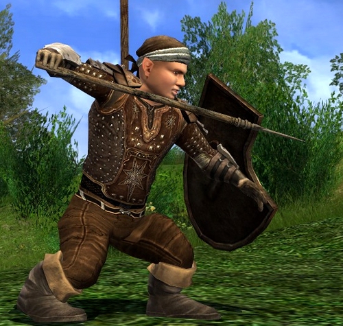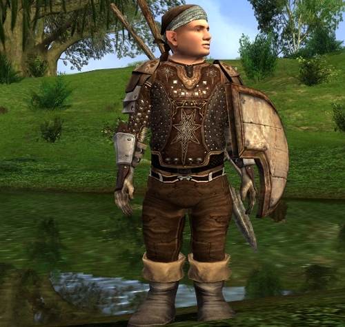 Hello Scott, I think you could also use one of the “padded leggings” from the Light Armour Smiths in Bree to combine the chest with. They only cost a few silvers. You may have to experiment with different colours and could try umber, black, grey. (Use the ctrl+click to preview before spending on dyes). You can find the Light Armour Smith in the Weapons and Armour shop in the center of Bree. For boots you could use the Barrow-scout’s Boots from GB, or the crafted version which has the same looks (Westernesse Protector’s Boots lvl45). Some shoulder guards from the Medium Armour Smith in Thorin’s Hall and some Leather Gloves from Bree or Esteldin and you’re good to go until Isengard! 🙂