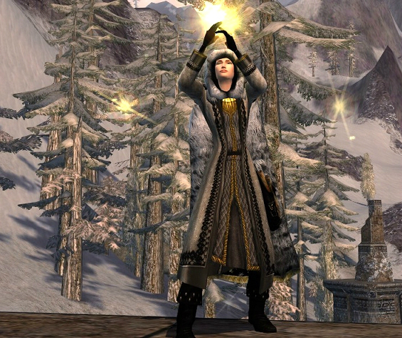 Of all classes the Rune-keeper and Lore-master are the nicest ones to take screenshots of. Their skills are just so elegant! I mean, take the hunter, he can… well… draw a bow and… well that’s kinda it. And the champion, he can pull his swords and then… do his swirly thingy…, not to mention the guardian who only bumps his shield into everything… There is just nothing like the dazzling, graceful art of the truly refined classes. So here’s my awesome Rune-keeper showing off her breathtaking skills in winter outfit. Chilling… isn’t it?