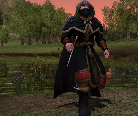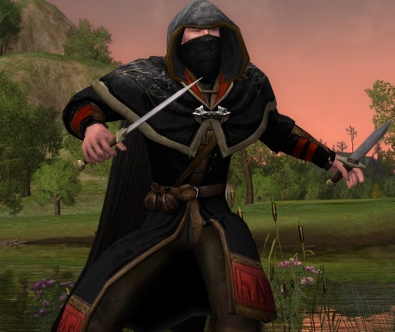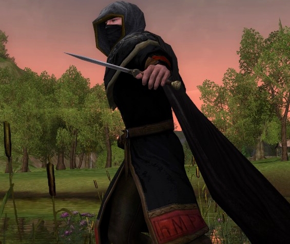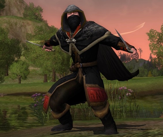 I wasn’t going to title this post “Revenge of the Ninja”, but that kind of came to mind when I created this outfit. Freyjuska created a wonderful Wisdom Seeker with these same new light armour pieces, well I thought these pieces can dress a sinister assassin just as well! I don’t know if Turbine put a hotfix on this, or if I just have a different item than Frey has, but I was able to dye my chest piece without problems. Strange things are happening to our outfits lately… designs get swapped, changed or lost (forever?), armour becomes unbarterable, items go from undyeable to dyeable without any notice. I feel a bit at a loss with all these changes, especially since Turbine doesn’t keep us up to date with information. Are all these changes working as intended or bugged as unintended? We may never find out…