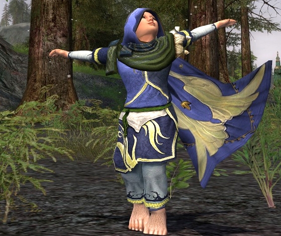 Back: Hooded Cloak of the Ibis, navy dye (Lotro store, cosmetic)