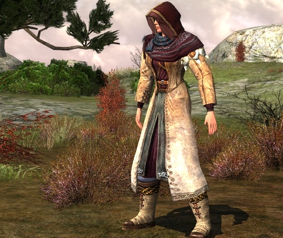 I’m enjoying another week off work and find myself with lots of time to play Lotro, as there isn’t much else to do around here at the moment. I am levelling my lore-master and at level 55 she is still questing in Eregion! My aim is to do as little Moria as possible this time around, as I already took two characters through it and am not a big fan of the mines, so I’m trying to level as close to 56 as possible, then do all the Volume II books, and then move on to Lothlorien. On the road, she wears appropriate attire.
