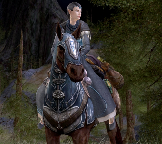 OK, when I got the tweet that today is the last day to buy the horse, and I didn’t win the lottery, I broke down and bought it. And for anyone wondering, the Elven hauberk from the Celondim outfitter IS a perfect match. Dyed navy, the gold dyable bits turn greyish, which complements the horse nicely. So for those of us who don’t wear dresses, it’s something you may want to look into. If you’re on the fence about getting the horse, do it. I don’t think you’ll regret it.