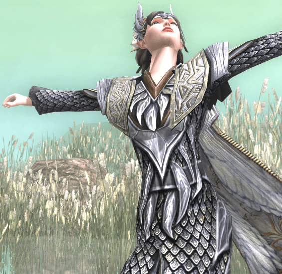 This is just so beautiful ! Your writing of the new region made me feel the beauty surrounding your design. I have been playing LOTRO for less than a year and could have been at higher levels on several of my Rose toons, but then I would have missed so many places to explore. Eventually they will reach the Great River and other regions, and will be dressed in the most wonderful ways since many of your cosmetic designs inspire me. Thank you for the gorgeous ensemble and just awesome description of the new regions.