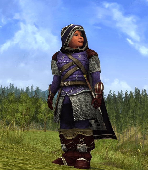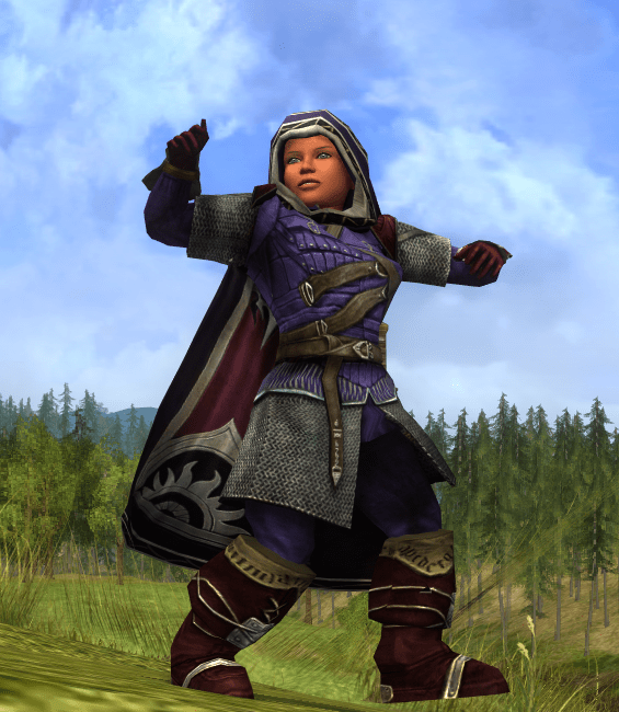 This week the Character Slots are on sale and I just couldn’t help myself. More characters equals more bagspace and more outfit models for me, so I did get myself not one but two more character slots and filled them up already! As there are no more classes available that I do not already have, I chose the class that I love to play most, minstrel, but this one is a fancy hobbit lass. I made her a Stoor so I can use boots for her without any feelings of remorse! I love boots on hobbit girls, but I don’t use any on my burglar girl as it seems inappropriate.