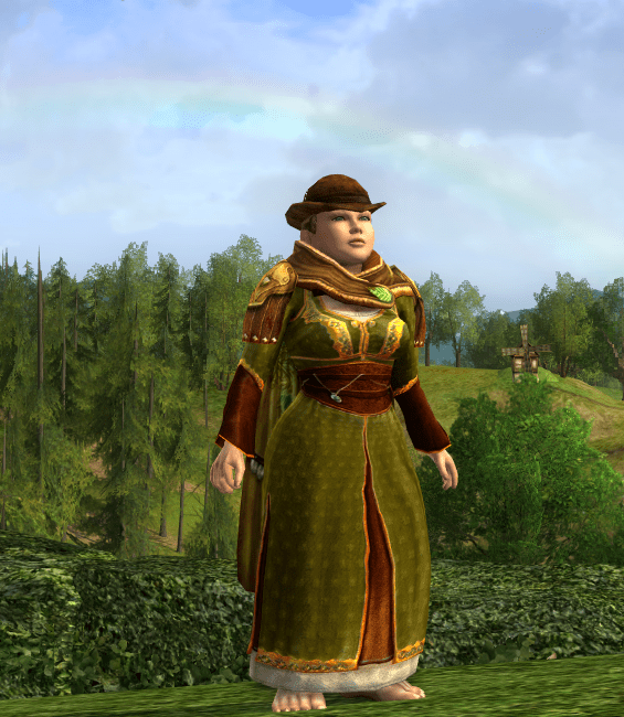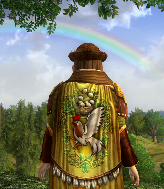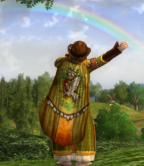 The “chicken quests” are something I’ve been wanting to do for a long time but never gave myself time to do it. There was always something more important like levelling or doing instances. Now that I am levelling my fourth character to level-cap I decided it was time to take a pause and finally do the chicken-run, especially since this is a hobbit and she should be the one to get that cloak! So off I went, some journeys were long, but it was fun!