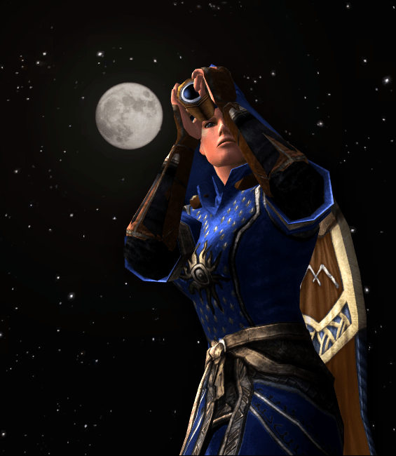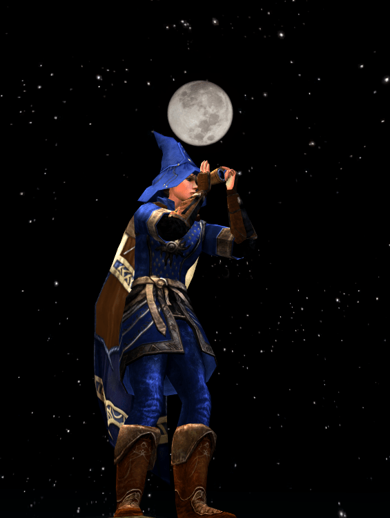 Wow, this is an awesome match for the steed! I think I like the cloaked version best. The star details on the chest and the star/moon/sun on the hat are a perfect touch. I love the shots with the “spyglass” too, great emote-repurposing! 🙂