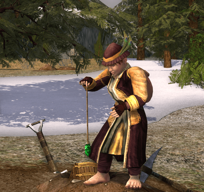 I love how the dowsing emote looks on the Hobbit, the rope is so long and the gem looks huge! They must have made it a fixed length. 🙂