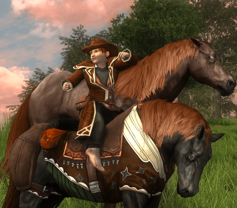 Wow, I like it that you can even color your mount! That’s something to look forward to 🙂 With these “Simple” outfits, you’ve yet again created a lovely outfit! These are truly great to ride in. Or so I can imagine. I know of one particular hobbit who’d be very jealous if she could see these outfits and mounts. Perhaps it’s good she can’t… yet. She’ll need to work very hard to get the outfits and the ponies she’d like to have 😀 I know she’ll be nagging me till she’s got at least one of them! She’s all for ponies!