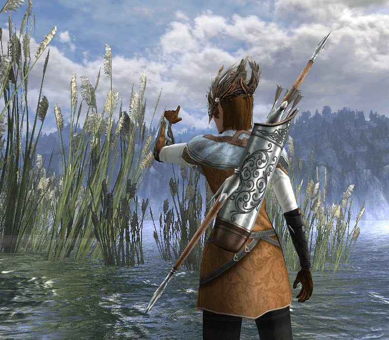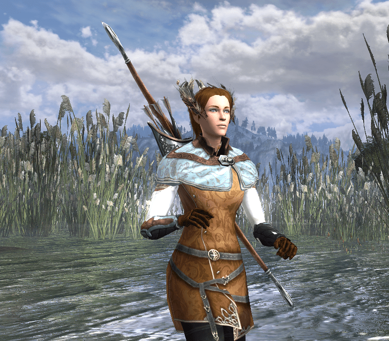 So today I am sharing my latest elf huntress outfit. I’ve been wanting to use this chestpiece for a while because I love the subtle floral print. Combined with the shoulder piece and the quiver that matches the pattern, it becomes a feminine yet comfortable ensemble.