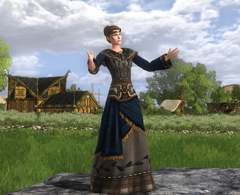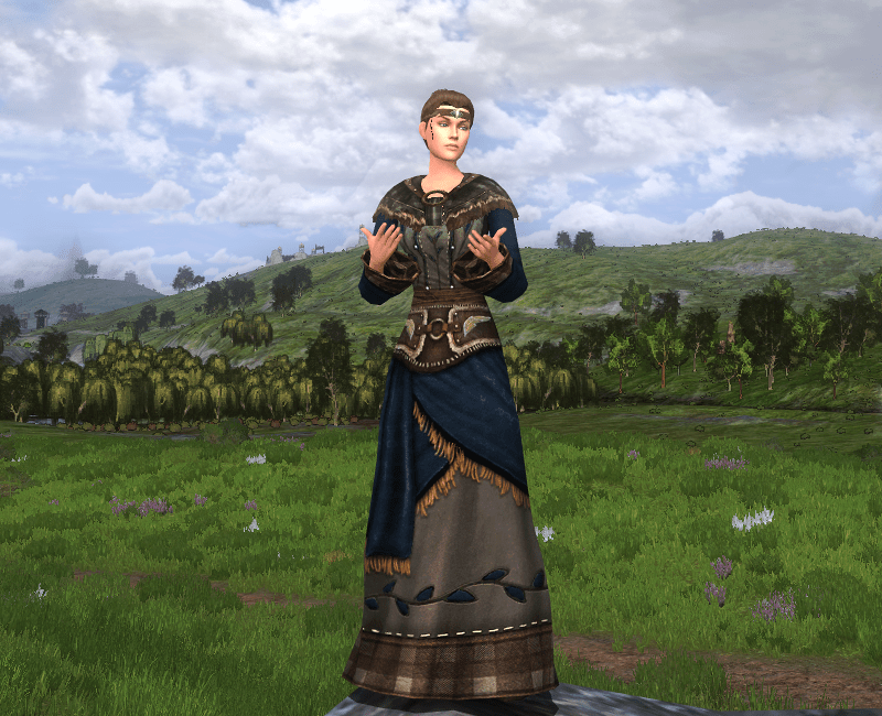 While I wait, I have outfitted my main character with one of the new Holbytla cosmetics from the Wilderland quartermaster. This robe is very fitting for living a rustic homesteading life in Rohan. I wish the game designers would make more of these kind of intricate, super long robes. I love them.