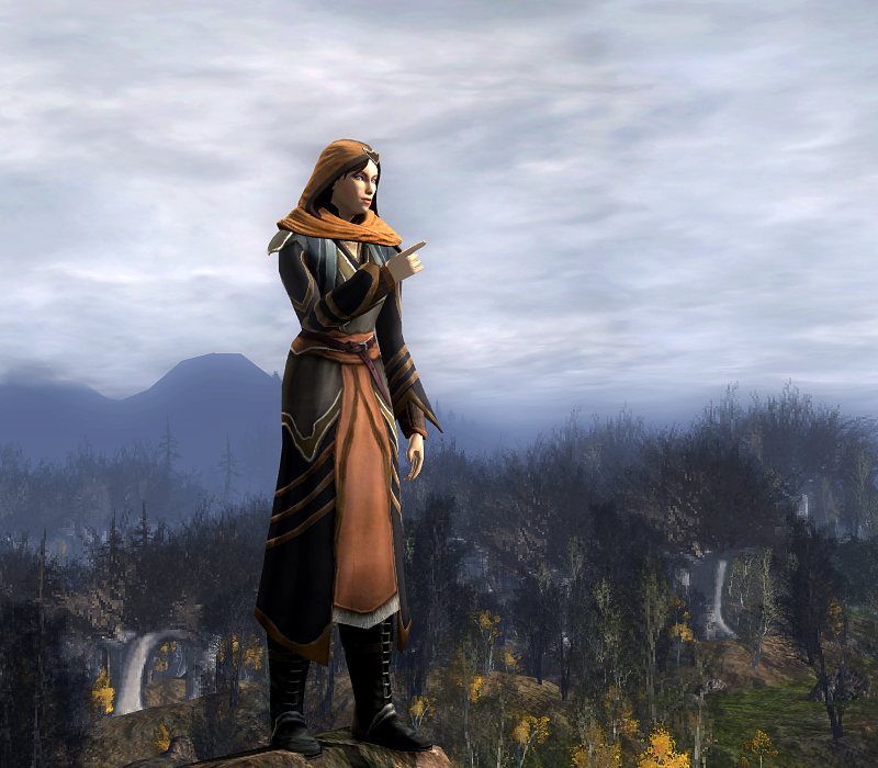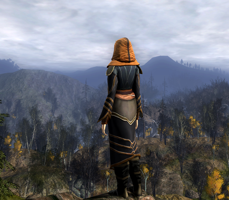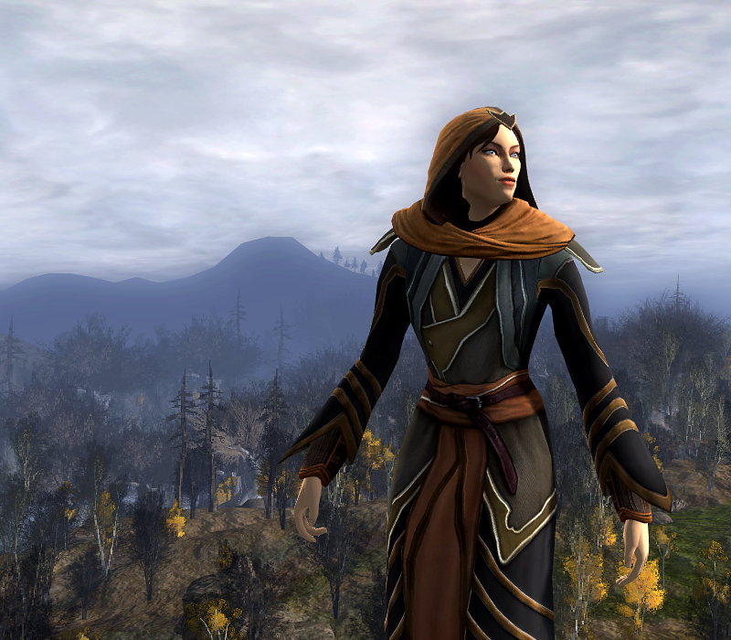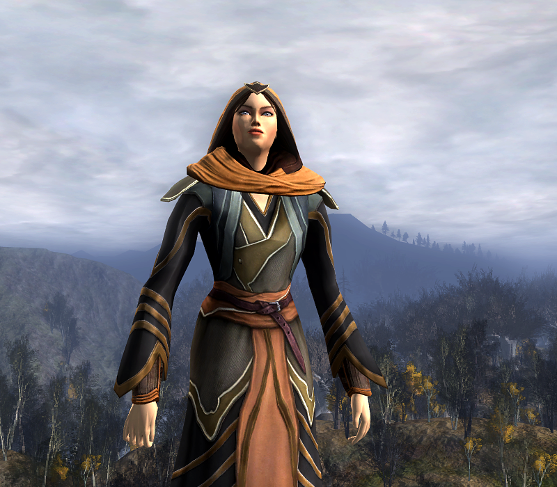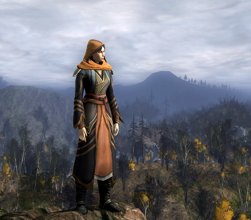 Umbar and Harad have some lovely cosmetics available that fit most characters. The pieces are refined and well designed, and I am grateful for the Lotro Team that they continue to progress and provide original and beautiful armour pieces. Some of these pieces are versatile and can be matched to older style armour and outfits. My elf has updated a robe that originates from older content with a few newer pieces.
