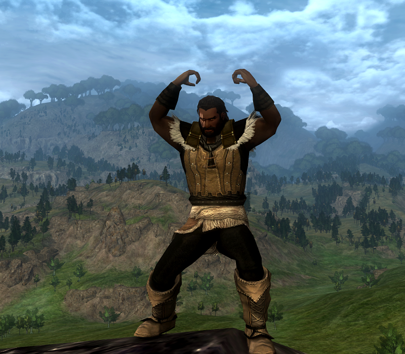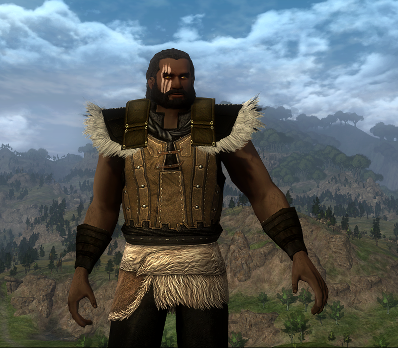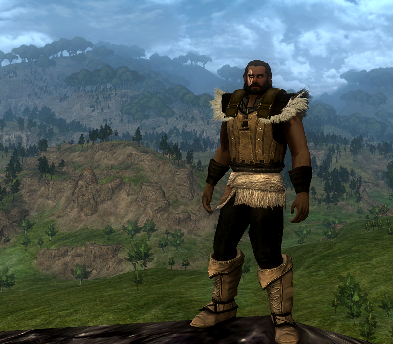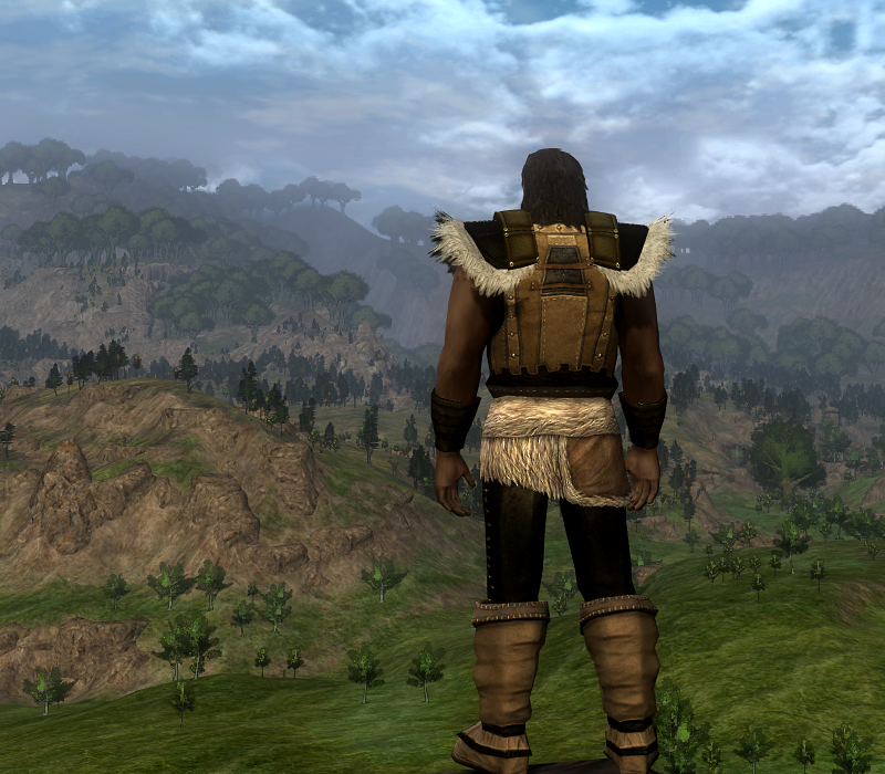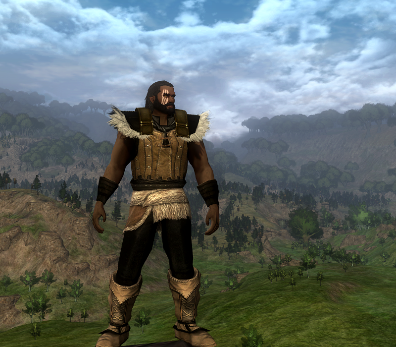 I chose to revisit the Beorning Lands and find a style for my character that I think matches the feel of the class in game. In the Books the Beorning would wear only simple cloth, and the Character Creation outfits sort of resemble that, but for this one I wanted a more furry appearance. The boots come from the Anniversary Festival which will be here by the end of April, so there’s your chance to pick them up if you haven’t. Also, the Curator, who has the leggings available, is scheduled to be back around the same time.