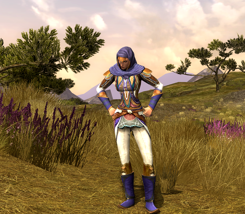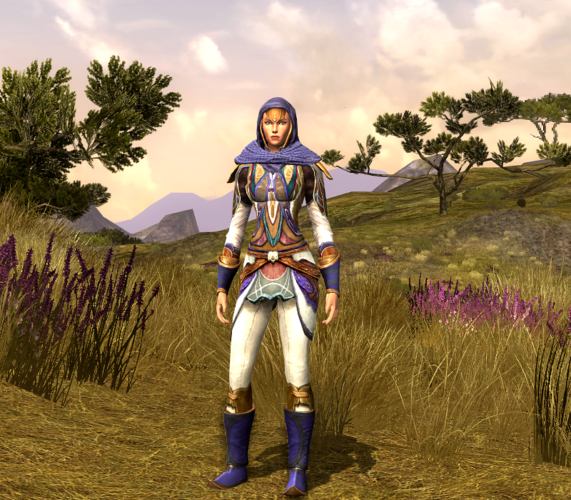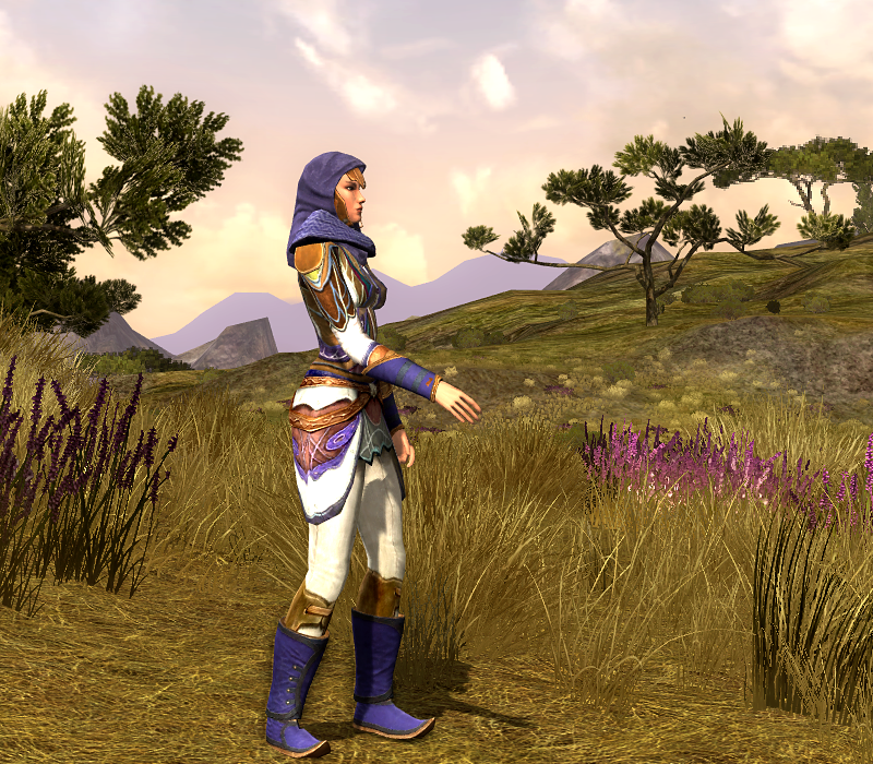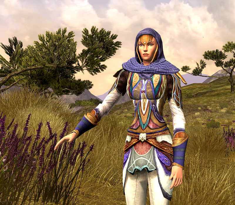 Hymne is dressed up in a combination of classic Rivendell armour, refurbished with some new tailor-made pieces, for an upgraded look of her older Rivendell outfit (you can find her original vintage outfit here). I am still in love with these Rivendell armour pieces that you can purchase from the Medium Armour Smith. There are other Armour Smith pieces and crafted pieces in that same level range that are still my favourite outfits and still in use by quite a few of my Elves. The pieces may be dated, but combined with a few newer pieces here and there, they make for some of the best Elvish outfits.