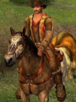 Categories: - Casual & travel, Brown and Orange, Horses & Ponies, Male, MOUNTS, Outfit, Race of Man male • Tags: Adventurer's Hat, Autumn, Cosmetic Outfit, Herdsman's Waistcoat and Shirt, Lord of the Rings Online, Lotro Cosmetic Outfit, Ranger, Westernesse Leather Leggings, Westernesse Protectors Boots